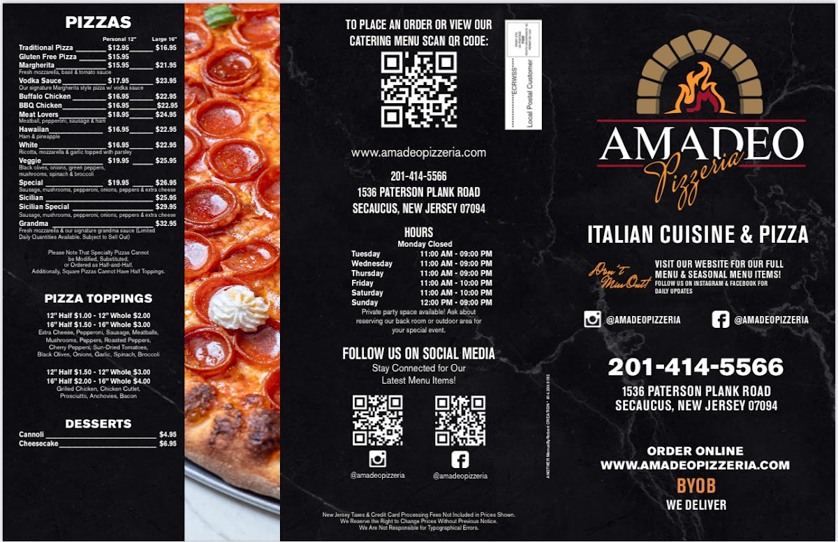 Overall, Amadeo Pizzeria’s menu is a fantastic mix of traditional Italian flavors, ensuring there’s something for everyone, from hearty pastas and pizzas to delicious appetizers and desserts. Whether you’re dining in or ordering out, you’re in for a treat!